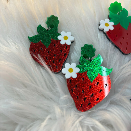 AgotadoAretes Fresa Flor Acrílico